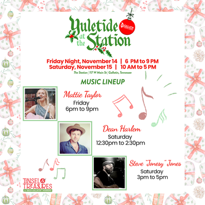 ✨ Kick off the holiday season at Yuletide at the Station, part of Gallatin’s beloved Tinsel & Treasures Holiday Merchant Open House Weekend!